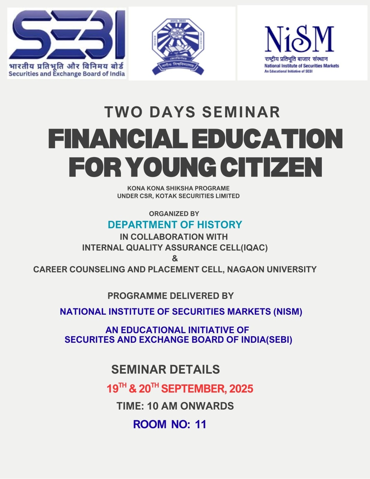 | Quiz Competition to commemorate 400th Birth Anniversary Of Lachit Barphukan | A Quiz Competition Was organised by the Dept. Of History in collaboration with Nowgong College Autonomous Students' Unionto celebrate the 400th Birth Anniversary of Lachit Barphukan. | 2022-11-18 | View File |